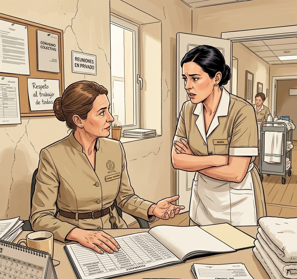 Hoy quiero compartir con vosotras una escena que seguro habéis vivido esta semana (o ayer mismo). Se cierra la puerta del office, una camarera te pide “cinco minutitos” y suelta la frase bomba: “Oye, que yo veo diferencias aquí. A las demás no las mueves y a mí me traes de aquí para allá. Y yo llevo en esta empresa más años que otras”.