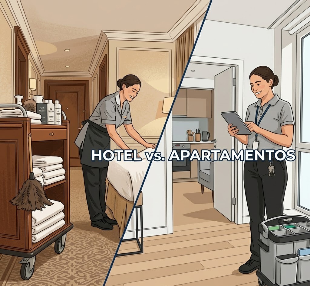 El cliente de apartamentos ya no se conforma con una llave en una caja de seguridad y un piso “pasable”. Ahora quiere estándares de hotel: sábanas blancas impecables, precintos de higiene en el baño y ni un solo pelo en el sofá. Los propietarios se han dado cuenta de que, para dar ese nivel, necesitan una gobernanta de las de verdad, no solo una empresa de limpieza genérica.