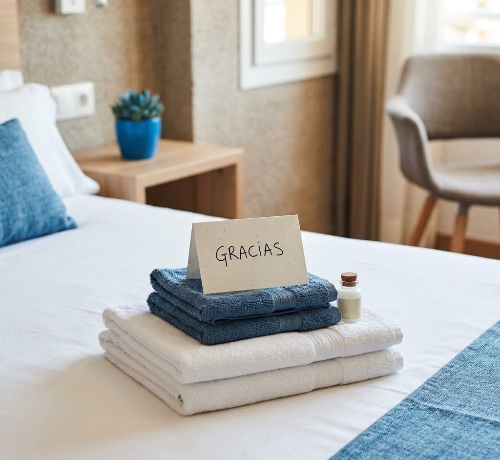 - El gesto aliado: Que el cliente deje todas las toallas usadas en un solo montón, preferiblemente sobre el bidé o en un rincón accesible.