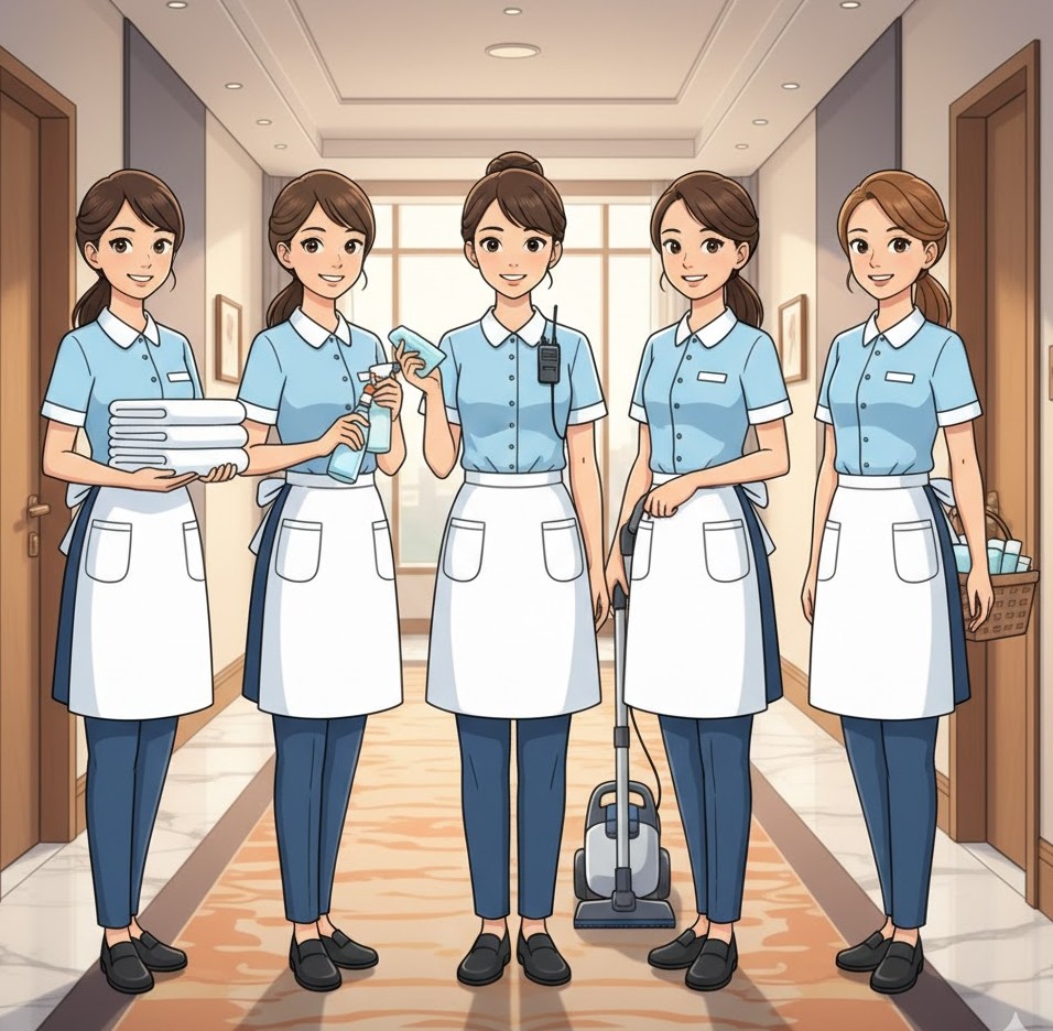 Una camarera de piso bien uniformada no solo limpia, da categoría al hotel.