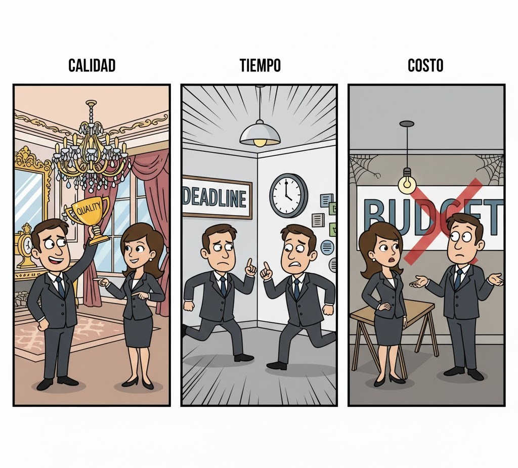 Esto es ley de vida: Calidad, Precio y Tiempo. Si el jefe quiere las tres, miente. Si el presupuesto es bajo, o bajamos la calidad o aumentamos el tiempo de entrega. No hay más. La próxima vez que te pida lo imposible, intenta explicarle esto con paciencia pero firmeza: “Jefe, si quieres este resultado, no puedo hacerlo con este presupuesto. ¿Qué prefieres que prioricemos?”. Que elija él, que para eso cobra más.