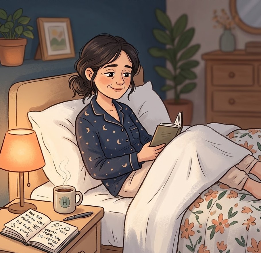 - Hazte un “VIP” a ti misma: Una cama bien estirada, sábanas que huelan a limpio (el suavizante de toda la vida ayuda) y nada de móviles.