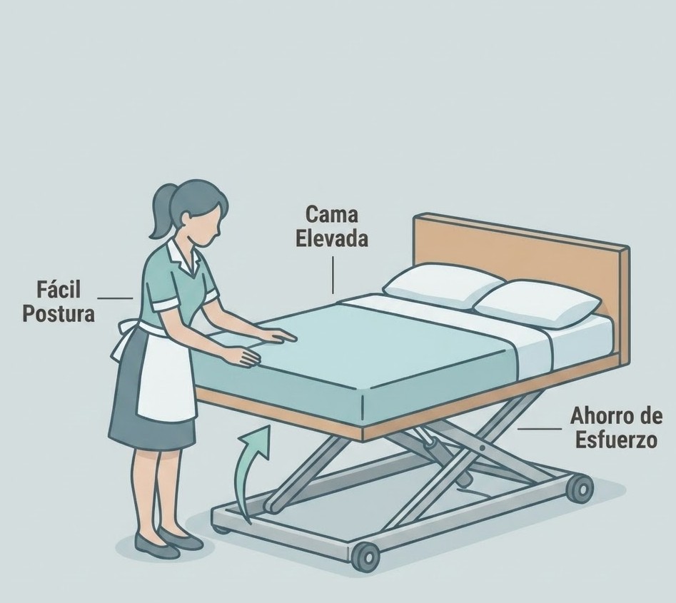 - Elevadores de colchones: Herramientas mecánicas que reducen hasta en un 60% la carga lumbar al hacer las camas.